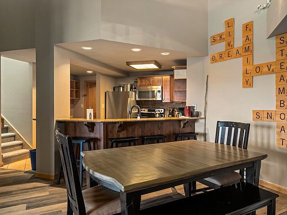 Stylish Mountain Retreat at Trappeur’s Lodge, Minutes from Steamboat Ski Area! Welcome to this elegant and beautifully updated 4 bedroom/4 bathroom residence in Trappeur’s Lodge, where mountain charm meets modern sophistication. Situated just minutes from the world-renowned Steamboat Ski Area, this unit offers the perfect combination of luxury, comfort, and convenience for year-round enjoyment.The spacious living room is designed for both relaxation and entertaining, featuring an elegant sectional sofa complemented by chic metal and glass accent tables. A sleek gas fireplace serves as a focal point on a striking barn wood feature wall, while skylights and vaulted ceilings create an open, airy ambiance. Step out onto the private balcony to soak in the fresh mountain air and stunning views. Overlooking the living and dining areas, the updated kitchen provides an ideal space for gatherings. Outfitted with modern appliances, new countertops, and ample prep space, it’s perfect for any home chef or host. The open-concept layout ensures you stay connected with friends while preparing meals. The upstairs bedroom offers ample sapce to unwind away form the main living room. The primary main level bedroom features a cozy queen bed and an attached private bathroom, stocked with plush towels and luxurious bath products. The 3rd bedroom includes a twin-over-full bunk bed and its own en-suite bathroom, while another bedroom offers two twin beds and another private bathroom.Trappeur’s Lodge also offers exceptional amenities, including a year-round shuttle service for easy access to the slopes and downtown Steamboat Springs. After a day of adventure, unwind in the hot tubs, take a dip in the heated pool, relax in the inviting communal spaces, enjoy the sauna, work from the business center or get a workout in the expansive weightroom. Don’t miss your chance to own this stunning retreat at Trappeur’s Lodge—schedule your private showing today and make this mountain paradise yours!