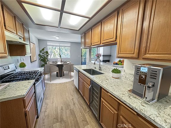 Welcome to your airy, top-floor corner condo, one of the community’s most sought-after layouts with two suites floorplans for comfort and privacy. Perched on the 3rd floor, this end unit enjoys sweeping views, refreshing cross-breezes, and a relaxing balcony right off the living room. Upgrades include: Pergo flooring throughout; a refreshed kitchen, dishwasher, wine/beverage refrigerator, quartz countertops, and a stainless sink with a sleek modern faucet. The kitchen’s generous prep space makes cooking and entertaining a joy. In the living room, cozy evenings await by the fireplace. Both bedrooms feature mirrored wardrobe closets, with the expansive primary offering extended mirrored closet space for extra storage. Comes with side-by-side laundry and two side-by-side assigned parking spaces with gated and secured access. Located in North San Pedro, you’re within walking distance to shopping, dining, and parks and less than 5 miles to the beach.