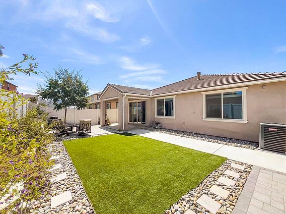 Welcome to Park Circle, Valley Center’s premier master-planned community, where small-town charm meets modern living. Step inside this single story, newer construction home with soaring 9-foot ceilings and an open floor plan that’s both spacious and inviting. The gourmet kitchen is a showstopper, featuring stainless steel appliances, granite custom countertops, an undermount sink, and abundant storage. Natural gas powers the oven, dryer, and water heater for efficiency, while owned solar adds significant energy savings. The home offers three bedrooms plus a generously sized office/bonus room with double doors that can easily serve as a fourth bedroom, providing flexibility for your lifestyle. Elegant upgrades include 8-inch ceramic tile flooring, recessed lighting, and a substantially constructed, covered patio that opens to a fully fenced backyard enhanced with additional hardscape and pavers—perfect for privacy, relaxing and/or entertaining. The current VA mortgage on this home is also assumable at a 4.875% interest rate for qualified buyers. Beyond the home, Park Circle’s resort-style amenities make every day feel like a getaway. Residents enjoy multiple pools, a fitness center, clubhouse, playgrounds, dog parks, sports courts, and over 6 miles of scenic walking trails. The vibrant community hosts regular events, creating a welcoming neighborhood atmosphere. This is more than a home—it’s a lifestyle of comfort, convenience, and connection in one of Valley Center’s most desirable neighborhoods.