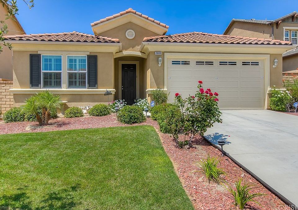 Immaculate SINGLE STORY, well-maintained VIEW home built 2012, spans on approx. 1924 Sq.Ft. Light and bright open floor plan home featuring wood laminate flooring, open kitchen with granite counters, huge granite center island, travertine floors, walk-in pantry/laundry room. Cozy family room/ office with a 3 glass panel wall overlooking the formal dining room and spacious living room leading to a beautifully landscaped backyard with amazing Santa Clarita views. An outdoor seating area with built-in canopy and several fruit trees. The large master suite has a walk-in custom closet, master bath with shower and separate soaking tub, dual sinks, ample counter space and travertine floors, 2 additional bedrooms one used as an office currently. Second bath with large shower, dual sinks & linen closet. Additional features include: stainless steel appliances, recessed lighting, 8th 6-panel colonial doors, Two car garage, spacious driveway, fully OWNED solar panel system, alarm system, dual-pane windows, fire sprinklers, plantation shutters, professionally landscaped front and backyard, home built with extra insulation to retain temperature and sound proofing, low HOA's. A true pride of ownership will be noticed throughout this home.