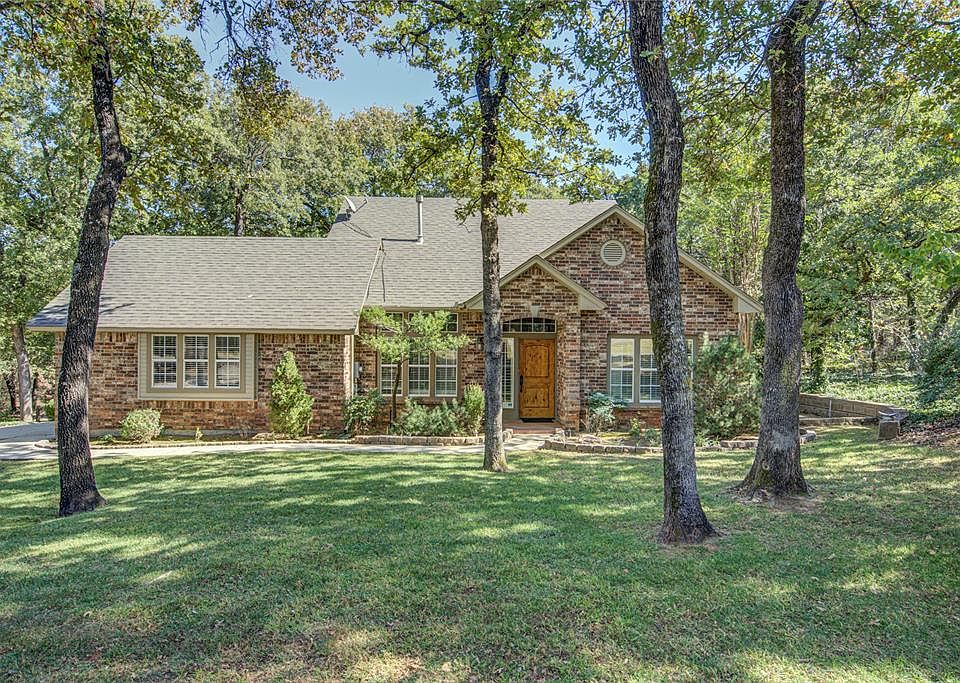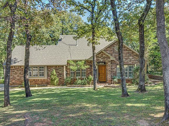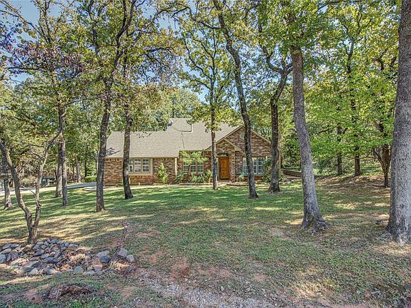 Step outside to your personal oasis featuring a wood deck and covered patio with stunning wood ceiling details. Landscape lighting illuminates the property beautifully in the evenings, while the sprinkler system keeps your grounds looking pristine year-round. The included storage shed provides practical space for tools and seasonal items. Inside, elegant shutters frame the windows, and a wood-burning fireplace creates the perfect focal point. The combination of indoor and outdoor living spaces makes this property ideal for both quiet relaxation and lively entertaining. This property represents an exceptional opportunity to own a piece of Oklahoma's natural beauty while enjoying modern conveniences and thoughtful updates throughout.