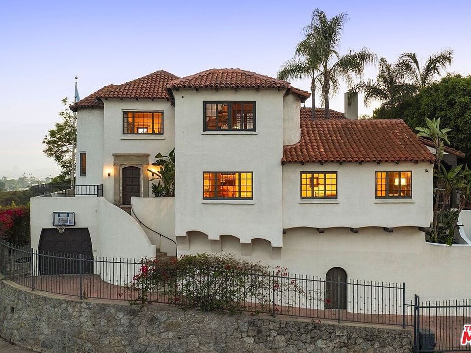 This gated circa 1926 Spanish Colonial Revival home with a rich historical pedigree, is one of Hollywoodland's earliest and most distinctive houses. Designed by architect Elmer Grey (known for the Beverly Hills hotel and the Huntington Art Gallery), the property rises from historic stone walls to a commanding Beachwood Canyon promontory with spellbinding views of major landmarks - Hollywood Sign, Griffith Observatory and L.A. skyline to the ocean, in a neighborhood synonymous with the golden age of cinema and magical architecture. Notable features of the 5 bedrooms, 4.5 bathrooms property include a formal entry with original terrazzo floor and a graceful, curved staircase; well-preserved Malibu tiles throughout, vintage light fixtures and windows, and multiple patios, with a layout that harmoniously balances formal old world elegance and comfortable contemporary living. The main level has a spacious family room opening to a peaceful romantic courtyard with a wood-burning fireplace and a separate dining alcove; a formal dining room; a large kitchen with high end appliances and custom cabinetry; 3 perfectly positioned bedrooms; 2 baths and a classic powder room. Upstairs features a grand scale living room with coved ceilings and a carved stone wood-burning fireplace, opening onto a sunny patio; an exquisite original chapel/library with a 1920s Della Robbia wall fountain, original stained-glass windows and walls of built-in bookcases. The well-appointed primary bedroom with ensuite luxurious bathroom opening to a private balcony, and a walk-in closet, completes this level. Discreetly tucked below, an ideal guest studio with views has a private street entrance, a kitchenette and a bath. The verdant and tranquil setting compliments the home's architecture and embodies the California lifestyle, offering optimum indoor/outdoor entertaining possibilities and expansive views from virtually every room. Glamorous and authentic architectural details have been thoughtfully preserved. This prized location on Belden Drive, near Beachwood Village market, cafes and shops, offers a calm oasis with utmost privacy.