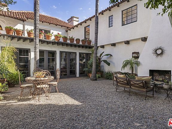Wood-burning fireplaceCarved stone wood-burning fireplacePrivate balconyGraceful curved staircaseCommanding beachwood canyon promontoryVintage light fixturesPeaceful romantic courtyard