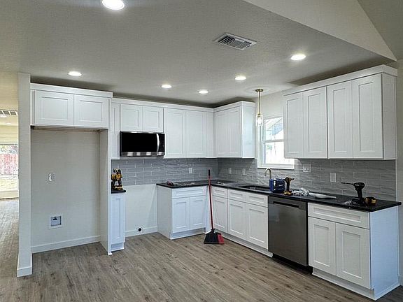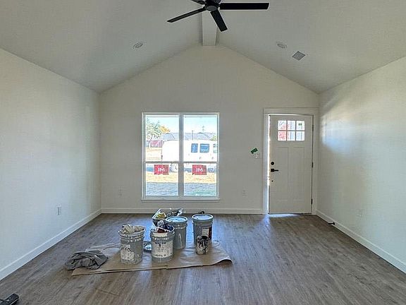 Welcome home to this stunning newly built residence, where clean modern style meets everyday comfort. Step inside to an open, light-filled layout highlighted by a vaulted ceiling in the living room, sleek vinyl flooring throughout, and gold finishes. The kitchen boasts white shaker style cabinetry, stainless appliances, and a large walk-in pantry—perfect for storing all your essentials. A convenient mud room with built-in bench sits just off the 2-car garage, creating an ideal drop zone for busy days. Extend your living outdoors with a privacy-fenced large backyard with sod. With its modern finishes, functional layout, and brand-new build quality, you won't want to miss this opportunity! Estimated Completion December 2025.