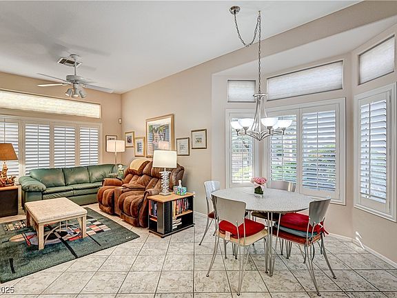 Welcome to this beautifully maintained home in the heart of Sun City Summerlin, one of Las Vegas’ most sought-after 55+ communities. This spacious residence offers 2 bedrooms, 2 bathrooms, a dedicated office/den, and a flexible layout perfect for entertaining and everyday living. Enjoy the elegance of formal living and dining room, complemented by a warm and inviting family room—also known as the Nevada Room—ideal for relaxing with friends or quiet evenings at home. Situated on a premium corner lot, the home enjoys added privacy, natural light, and charming curb appeal. Energy efficiency is a perk with leased solar panels. Residents of Sun City Summerlin enjoy amenities including golf courses, fitness centers, pools, clubs, and social activities all surrounded by stunning mountain and city views. SELLER IS OFFERING $6500 IN BUYER CREDIT FOR REMODELING OR INTEREST RATE BUY DOWN AS WELL AS WILLING TO PAY OFF THE REMINDER 10 YEAR LEASE ON THE SOLAR PANELS THAT IS OVER A $9,000 INCENTIVE!