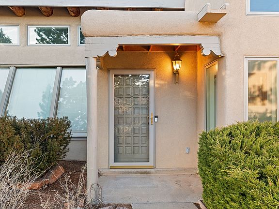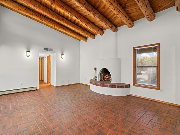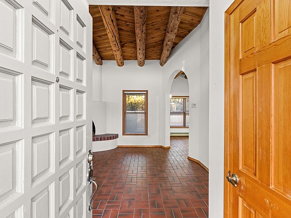 Come see this well-maintained property in the Southside neighborhood of Villa Caballero. Close to schools, medical facilities and shopping, this 3 bedroom home is beautifully finished in classic Southwestern style, with wooden, beamed ceilings and basket weave tile. It is designed in passive solar style, and is warm and cozy, while allowing ample natural light into the home. The large kitchen opens to a den with access to the back patio and to the front "plant room", and has lots of storage and counter-space. Each of the bedrooms have new carpet, with walk-in closets, and the primary bedroom is highlighted by a kiva fireplace. The outdoor space are inviting, with abundant pinon and juniper, and much of the one-half acre lot is walled.