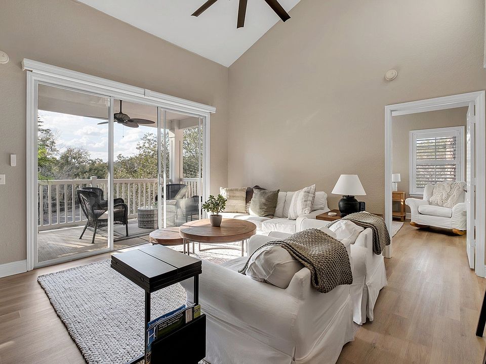 Discover the perfect blend of modern updates and timeless elegance in this beautifully updated 2-story condo located in the highlydesirable Barrington Park community. This spacious unit features 2 traditional bedrooms plus a versatile loft/bedroom, offering plenty ofroom for comfortable living. Step inside to soaring 18-foot ceilings, allowing for exceptional natural light and an airy, open feel. Enjoyyour private balcony with serene views overlooking lush green space—without the worry of upstairs neighbors. Updated in 2021, thishome boasts granite countertops, sleek stainless steel Samsung kitchen appliances, stylish LVP flooring, elegant crown molding,upgraded light fixtures, and fans. Additional highlights include custom plantation shutters, automated window coverings, and fresh paintthroughout. Recent upgrades ensure worry-free living, including a new roof (2019), HVAC system (2019), and an included washer &dryer. With its prime location overlooking the green space and pool, this is truly one of the best spots in Barrington Park! Also available for lease.