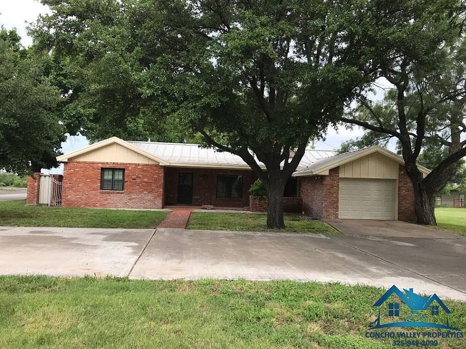 This large single-family home is located right across from Goodfellow AFB. This home features wood and linoleum flooring, ceiling fans, a fireplace, stove, refrigerator, dishwasher, a formal dining room, lots of cabinet space, washer and dryer connections, central heat and air, a one-car garage, off-street parking, sprinkler system, and a fenced back yard. No pets, trampolines, or swimming pools allowed. An ID must be presented to view the home. All applicants must meet our resident criteria. Owner will bill out electric. Well water. Lawncare included.