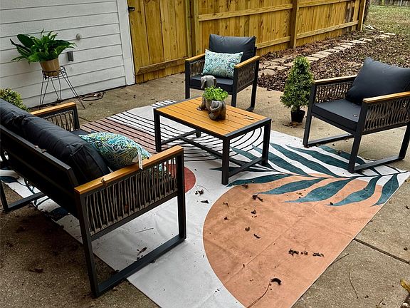 Outside, the updates continue with a brand-new roof (1 month old), fresh exterior paint, new porch columns, new landscaping, landscape lighting front and back, enhanced water feature in backyard with beautiful landscaping stones, TWO firepits, patio furniture that remains, French doors leading to the patio, refurbished privacy fencing with replaced sections, and rear gutters. Trees have been professionally pruned for a clean, welcoming look.