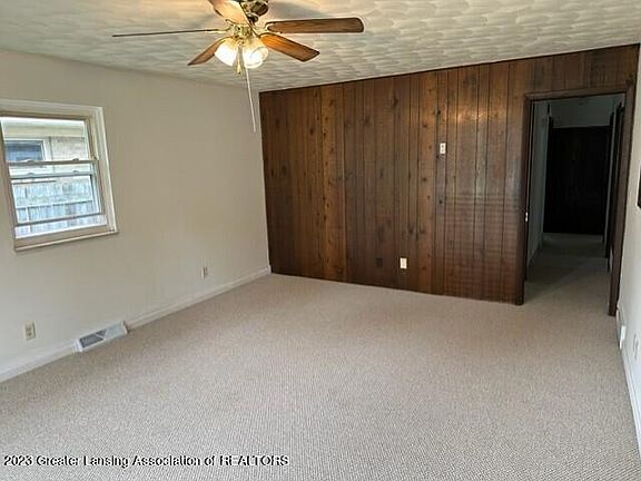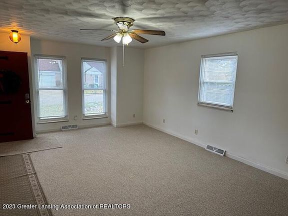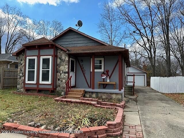 Lansing, prime location off Scenic Delta River Drive. Freshly painted inside and out! The welcoming front porch greets you and leads you into this 3-bedroom, 1 bath, ranch home. Look out the two large front windows to enjoy the quiet street. A detached 2.5 car detached garage has a walk-up attic. The backyard is fenced in. The spacious kitchen has new vinyl plank flooring, loads of cabinets, storage, and a window. Enjoy the good-sized living area and 3 bedrooms all boost with new carpeting! The bathroom includes a shower and tub combo, stool, and sink. This home is perfect for all ages with all the rooms on the main floor; great for first-time home buyers, midsize or a retirement home. Enjoy the warm and friendly neighborhood street. Close to Horsebrook Park, highway access and more.
