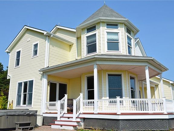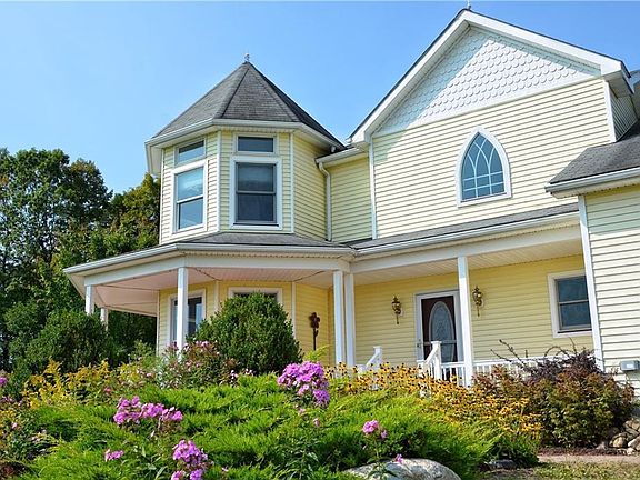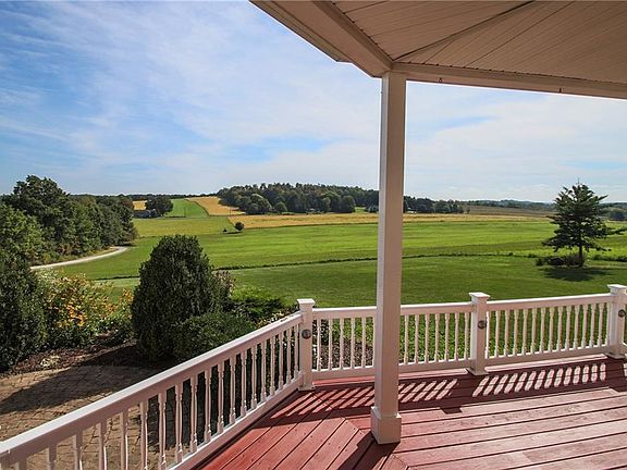 A very private hilltop setting features beautiful views and a peaceful retreat. The wrap around porch and master suite overlook with the rolling hills of the countryside where the sun rises into the morning sky ! A romantic moon follows the sun's path to rise over the same hills as the sun sets. A natures lover's paradise that includes acres of woodland and trails. A convenient location that is just over the Monroe County Line by Perinton - Route 31F & Penfield - Route 441 . This custom home must be seen to be appreciated !