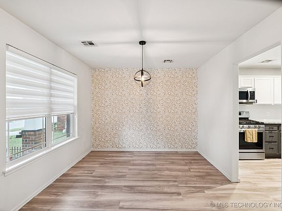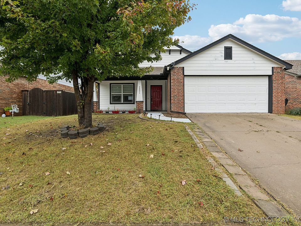 Great location in sought-after Broken Arrow Neighborhood, Fairway Crossing built by Simmons Homes. It is literally right across the street from the high school. 3 bedrooms, 2 bath, 2 car. Great floor plan, flooded with natural light, tall ceilings and open concept. Kitchen open to large Living room with Vaulted Ceilings Separate Dining room or office off of Kitchen. The modern kitchen features shaker style cabinets, granite counters, stainless steel appliances and a large pantry. The chef will love the gas stove! The refrigerator and the washer/dryer stay, with an acceptable offer. Nice sized Primary bedroom with Walk-in Closet and Private Bath with rainfall showerhead. Enjoy your coffee on the front porch!!
