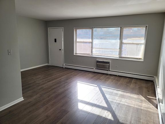 New laminate flooring throughout the apartment. Parking right in front of the unit. Remodeled apartment 1Bd 1Ba Updated bathroom with new vanity and fixtures. Ceiling fan in the living room and bedroom. Dining area. 1st floor with easy access to parking. Walkable distance to Metra and other public transportation.