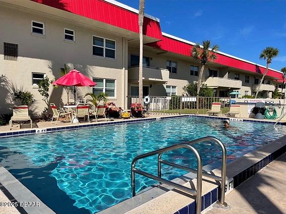 Always wanted to live on the river? Welcome home! This beautifully maintained 2-bedroom, 1-bathroom condo at Riverside sits on the Halifax River (Intracoastal) & is a ½-mile walk to the Atlantic Ocean! Enjoy the best of coastal living with 3 sparkling saltwater swimming pools (2 heated), shuffleboard courts, & BBQ grills in a beautifully landscaped courtyard. Relax on your back covered patio, overlooking the heated saltwater pool or fish off one of 2 private piers. Inside, you'll find a stylish black appliance package in the kitchen, new carpet (January 2024), new toilet (January 2024), & an A/C replaced in 2020. The community features a clubhouse w/ a full kitchen, bathrooms, & billiards table—perfect for gatherings. Cable, WiFi, & water are included, plus on-site pay laundry & 1 assigned parking spot. No pets, per association. Schedule your private showing today & start living the riverfront lifestyle you've always dreamed of! All info deemed to be true & correct, buyer must verify.