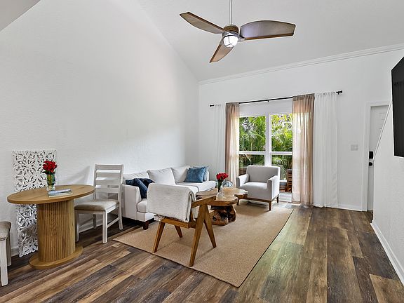 For added comfort and peace of mind, the home is equipped with all-new essentials, including a brand-new AC unit, water heater, washer and dryer, and hurricane impact windows.