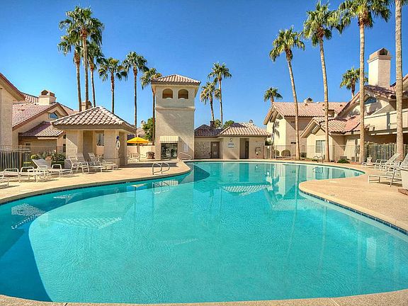 Welcome to the Pyramids at Palm Valley. A laid back, quiet, resort style stay. With garage parking, this 2 bed, 2 bath condo with washer/dryer within unit, will serve as an ideal home base! The Pyramids are in a perfect central location. Pro and Spring training stadiums all within 10-15 min. Great dining, shopping, golf courses, and parks within walking distance. On top of that, this complex has an amazing heated pool, hot tub, tennis courts, and a gym. Minimum 30 day lease. Fully furnished. No smoking allowed in home. Pets allowed extra fees apply. Internet, trash and utilities are included.