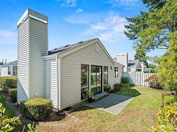 Highly sought after one-level in quiet 55+ community, Narrows Reach. Skylight and hardwoods in entry & kitchen. Open floor plan with vaulted ceiling in formal living/dining room/kitchen, Great for entertaining. Wood burning fireplace. Generous Primary w/ en suite bath & walk in closet. Guest bath with jetted soaking tub. Sliding doors off living, dining rooms to private fenced backyard with patio. Yard is beautifully maintained by HOA. Attached 2 car garage and additional parking in driveway for visitors. Community clubhouse can be reserved for parties. Close to freeway, Westgate retail & Point Defiance Park. Nicely updated with many new finishes. This condo is just waiting for you to call it Home!