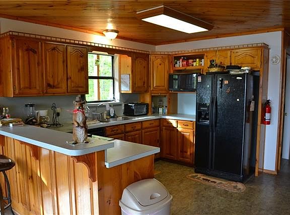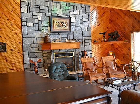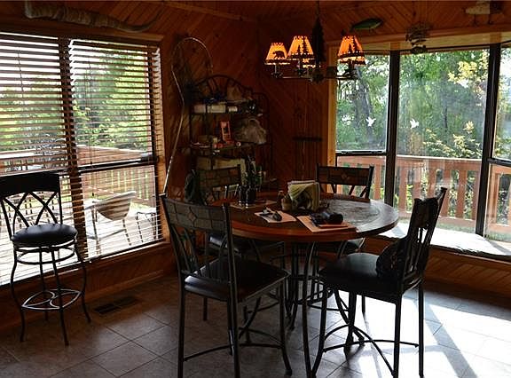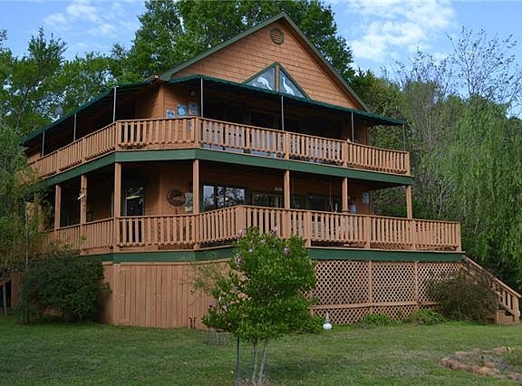 Beautiful home on Lake Bonham 2.94 acre lot which includes forested area. Approximately 300 ft of lake front with concrete retaining wall. All furnishings stay with property including 16 ft boat and motor. Fishing pier along with two slip floating dock with cover. Pine ceilings and walls in living areas with gas log fireplace and two skylights.Covered decks on both levels with views of lake and forest with tree house.