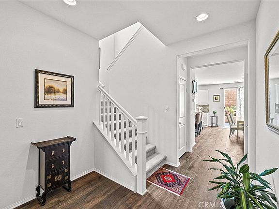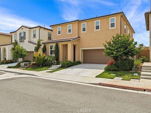 This beautiful home by Tri-Pointe is in the nice, gated community of Terrassa Villas in Corona. One bedroom downstairs with a full bath welcomes guest for a nice stay. Up the stairs are one office/recreation room and 3 bedrooms including a master bedroom with separate shower, bathtub, and custom counter. The upstairs laundry room has lot of cabinets, shelving, built-in wash sink, and the Maytag washer/dryer set is included. The owner added builder upgrades on kitchen counter, backsplash, pantry, bathrooms, flooring, data wiring, etc. Wood shutters are on the windows. It's like a new home ready for you to enjoy in. The private backyard is landscaped with concrete and low block plantation. In the 2-car garage is a tankless water heater supplying instant hot water to the house. This house also has a fire sprinkler system built in. The community playground and swimming pool are nearby with lower HOA fees. See it today and move in soon.