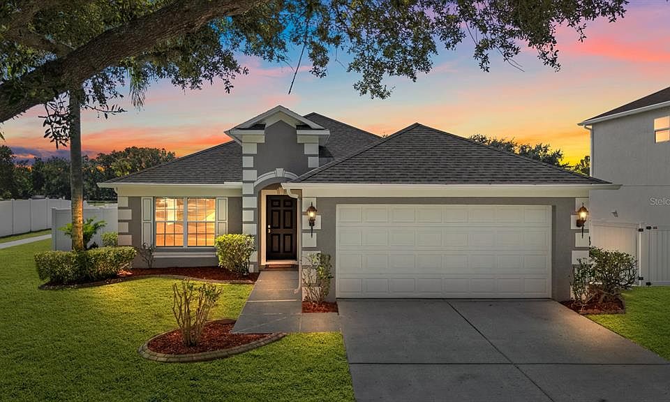 One or more photo(s) has been virtually staged. Welcome to this lovely modern rarely available ranch home in Valrico’s sought-after Buckhorn Preserve, ideally situated on a quiet cul-de-sac with no backyard neighbors. Thoughtfully designed for both comfortable everyday living and effortless entertaining, this 4-bedroom, 2-full bath residence offers over 2,000 sq. ft. of beautifully updated living space. This inviting home features porcelain tile flooring in the main living areas for easy maintenance and has been freshly painted inside and out, creating a bright, modern feel. The spacious layout includes a large living room, a separate dining area, and an open kitchen with custom cabinets, granite countertops, an island, eat-in area, and stainless steel appliances—perfect for family gatherings or hosting friends. The primary suite offers a peaceful retreat with a walk-in closet and private bath featuring a garden tub and separate shower. Three additional bedrooms provide plenty of space for family, guests, or a home office. Step outside to enjoy the covered, screened lanai overlooking a fenced backyard that offers both privacy and tranquility—ideal for relaxing mornings or evening get-togethers. Recent updates include a 2021 roof, new lighting throughout, modern stainless steel faucets, new carpet, and a Samsung stainless steel French door refrigerator. The Buckhorn neighborhood park is just steps from your backyard—perfect for recreation or walking your dog. Close to schools, shopping, dining, major highways, and golf. Don’t miss your chance to call this warm and welcoming Valrico home your own!
