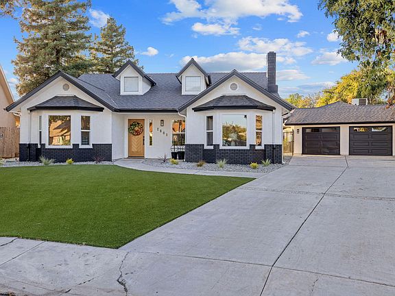 Tucked away in a highly sought-after SW Visalia neighborhood, this ''like new'' home is the one you've been waiting for! Situated on over half an acre, this beautifully renovated property offers both space and versatility in a prime location close to schools, shopping, and parks. The main home features 1,948 sq ft of thoughtfully updated living space, plus 560 sq ft second dwelling—ideal as a guest house, home office, gym, or private in-law suite. Complete with its own entrance, kitchen, bedroom, bathroom, and living/dining area, the possibilities are endless. From the moment you arrive, you'll be impressed by the stunning curb appeal: new artificial turf, refreshed landscaping, all-new exterior paint, brand new windows, and a new composition roof. Inside, the charm continues with new laminate flooring, baseboards, interior paint, updated electrical, designer lighting, and all new plumbing fixtures. The heart of the home is the chef's dream kitchen showcasing quartzite countertops, a large center island, new white cabinetry, and stainless steel appliances. A charming breakfast nook opens to the spacious backyard, making indoor-outdoor living seamless. The primary suite features dual closets and a spa-like bath with a freestanding tub, custom tile shower, dual vanities, and abundant storage. Two additional spacious bedrooms share a chic, fully renovated hall bath. A detached garage, interior laundry room with storage, and a backyard retreat complete the home. Relax or entertain under the backyard gazebo, surrounded by mature landscaping and plenty of open space for fun and games. This one-of-a-kind property combines modern luxury with timeless comfort. Truly a rare find—schedule your showing today and experience all this remarkable home has to offer!