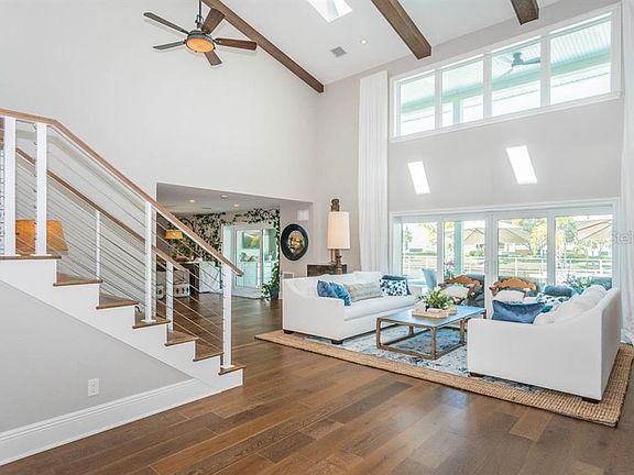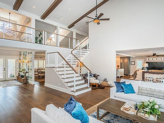 Welcome to the gated community of Pasadena Yacht & Country Club. Prepare to be WOW'ed by this complete and extensive renovation of both the interior and exterior of the home. The highest quality features and finishes throughout let you start living the Florida lifestyle in your new home! Full hurricane protection to include - hurricane rated doors, windows, garage doors, exterior doors, new roof 2019, roof tie down's to achieve the most advantageous discounts for insurance and wind mitigation. A complete interior & exterior renovation to include: 5 bedrooms and 5.5 baths - Enter into a spectacular foyer with 20' ceilings, an expansive living room with transom windows and skylights taking advantage of the beautiful Florida sunshine. The formal living room transitions easily into the inviting kitchen / family room area. A spectacular professionally designed kitchen features marble island counter & back splash, Wolfe, Subzero and Monogram Advantium appliances, high quality custom cabinetry and a striking Butler's pantry. A coastal themed formal dining is adjacent to the kitchen and the perfect space for entertaining. A reconfigured master suite on the FIRST FLOOR encompasses walk out access to the pool, walk-in closet with custom organization and a dedicated laundry closet with additional storage. Expansive master bathroom complete with custom marble tile work, glass enclosed shower, dual vanities with marble tops, extensive storage and a dreamy deep soaking tub in the center of the room. Warm toned wide plank wood floors run throughout the home. Upstairs a flex space begs for time to relax and read a book. A Junior suite with cathedral ceilings will welcome overnight guests in style. Three additional guest bedrooms share a hall bath complete with marble tile work - two of the rooms offer access to the upper patio through sliding doors. All closets have custom organization systems, integrated control for TV, Wifi, audio and security. OUTDOORS you will find an impressive kitchen adjacent to the pool with built-in grill, beverage refrigerators, all weather cabinetry and and entertaining bar surrounding kitchen, a dedicated pool bath with custom tile, steam shower, glass enclosure & sound system in a climate controlled space. Custom powder coated nautical railings surrounding pool & balconies, entryways around the home. Upper and lower patios feature over 110' of covered space, outdoor rated fans, & all weather bead board ceilings. On the waterfront, there is a new seawall and cap, new dock with wrapped pilings, Trex decking & 14,000lb boat lift. Custom landscape lighting, security lights & cameras, irrigation system & dedicated well, 6" gutters, complete stucco & painting of exterior, new paver driveway leading to the 4 car garage, 22kw whole house Generac generator with dedicated natural gas line, pool heater & salt system filtration. All major systems have been upgraded to include two zone AC, on demand water heater system, entire house electrical replaced and upgraded, all new plumbing. The lower level of the home is over 2,500 sq ft of storage or recreation space with waterfront access to boating storage room. The community offers optional membership in the club amenities including exceptional golfing at all levels, yachting, tennis, swimming and social activities for all ages for a separate fee. Enjoy boating in Boca Ciega Bay, Intercoastal and the Gulf from this deep water protected canal.