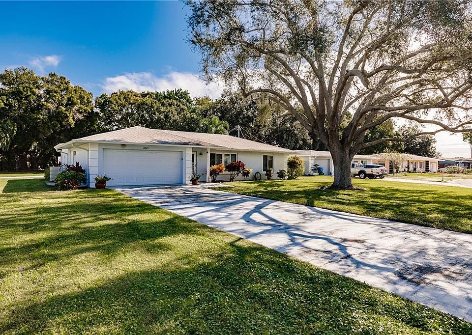 Beautiful updated home on a spacious corner lot in a close in location only 15min to lovely beaches. Three bedrooms and two full baths and a two car garage with no HOA. Newer impact windows, hurricane rated garage door, newer AC is 4 years old, lanai screens new, and many more updates. Gorgeous kitchen with raised panel cabinets and crown molding, large pull out drawers, corian counters, tile backsplash with listello accents, newer Bosch dishwasher, newer fixtures, lighting, fans and more. 16 inch tiles through out the home except the 3rd bedroom/office which has rubber flooring for exercise. Master suite is roomy with a large walk in closet and newer vanity. French doors from family room lead to a screened lanai out back. PVC fencing for your pets in the back yard but still tons of space for other hobbies or room to keep a boat or an rv. Very open and bright this home is move in ready and shows like a dream!