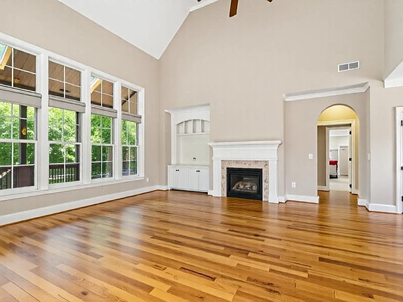 Located in the desirable Porto Fino neighborhood of Wake Forest, this stunning former Parade of Homes champion sits on a large corner cul-de-sac lot. Open floor plan with hardwood floors throughout the main living area. The expansive family room features a striking wall of windows, custom built-ins, and a cozy gas fireplace. The gourmet kitchen includes large center island, granite countertops, gas cooktop, stainless appliances, pantry and breakfast area. Host elegant dinners in the formal dining room which boasts exquisite molding and a stylish floor inlay. The main floor owner's suit includes a tray ceiling and large walk-in closet. The primary bathroom has granite counters, separate vanities, a jetted soaking tub and large shower with built-in seating. An additional bedroom, separate bathroom with shower, and large utility room finish off the main floor. Upstairs you'll find an additional three guest bedrooms and two full guest bathrooms. The upper floor also features a large bonus room. Enjoy the 4-seasons patio which looks out over a large, fenced yard and stone patio - perfect for year-round relaxation.**New AC and Heat on Second Floor with Warranty from Michael and Sons** Upgraded Landscaping. Newly painted throughout.