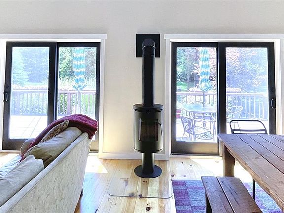Under a mile from Wallum Lake, tucked behind a tree-lined street and stone walls, sits this newly updated energy-efficient home on a 6+ acre property. Take advantage of the spacious estate where you will find a 2-story 2-car detached garage, multiple storage sheds, and your very own sprawling blueberry orchard. Prepare a meal from your fenced-in garden and chicken coop, relax on the deck, play lawn games, and end the day around the fire pit. Enter the light-filled open floor plan with a cathedral ceiling. A modern glass-front wood-burning stove serves as the heart of the space. The kitchen features high-end stainless-steel appliances, a farmhouse sink, and an impressive butcher block island. The rest of the home includes 2 bright bedrooms, 2 full baths (with one freestanding soaking tub), and 4 walk-in closets. The above-ground walkout basement functions as an office, workout space, entertainment area, AND spare bedroom!
