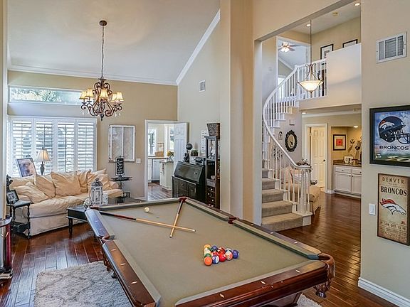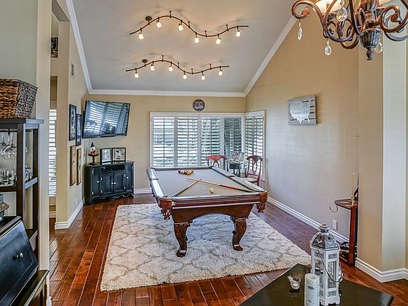 Spectacular Entertainers' Home. Prime Cul-de-sac Location. Resort Style Oasis Backyard - Sparkling Grey Bottom Pool & Spa with Slide, Stacked Stone Accents, Built-in BBQ Island, Patio Cover plus Raised Poolside Seating Area. Grassy Area and lots of greenery for privacy. No Mello Roos. No HOA. Extensive Upgrades Throughout. Distressed Maple Wood Floors. Large Baseboards. Crown Molding. Shutters. Updated Lighting Fixtures. Vaulted Ceiling in Living Room/Dining Room. Remodeled Kitchen - Granite Countertops, Tumbled Travertine Back Splash, Refinished Cabinets, Stainless Steel Appliances, Coffered Ceiling with Recessed Lighting, Center Island & Separate Breakfast Nook, Walk-in Pantry. Custom Wood Mantle, Tumbled Travertine Fireplace Surround, Built-in Entertainment Center with Book Shelves in Family Room. French Doors with Sidelites open to Patio. Wet Bar/Coffee Station. Guest Bedroom and Full Bathroom Downstairs. Sweeping Elegant Wood Handrails. Master Bedroom Suite - Remodeled Master Bathroom has Custom Marble Vanity & Dual Under Cabinet Basin Sinks, Travertine Flooring, Elegant Stone Shower & Soaking Tub, Designer Lighting and Fixtures, Walk-in & Secondary Closets w/ Custom Closet Organizers. Good Sized Secondary Bedrooms - One is Extra Spacious with Large Lighted Attic Storage. Remodeled Hall Bathroom. Whole House Fan. Large Side Yard Area for Storage. (Sheds Included) Two Car Garage w Built-in Cabinets & Overhead Storage Racks. Laundry Room Downstairs.