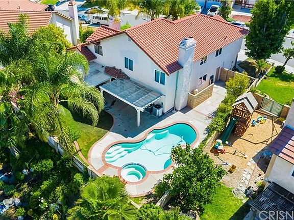 Maybe the best pool home in Saugus under $700,000! Outstanding end of cul-de-sac location & one of the most open floor plans in the area! Large usable lot with pool/spa & 3-car garage! So many nice features to this upgraded home - oversized tile, newer plank flooring, brand new carpet & paint, newer windows/slider & AC! Granite kitchen with white cabinets & stainless appliances. Popular floor plan with soaring ceilings upon entry, full bedroom + upgraded bathroom down, 3 spacious bedrooms up plus a huge second family room/loft (could be a 5th bedroom). Master has an especially large walk-in closet with built-ins. A full length patio with cover plus grassy area in the yard. No HOA or Mello Roos taxes so the value is certainly here!