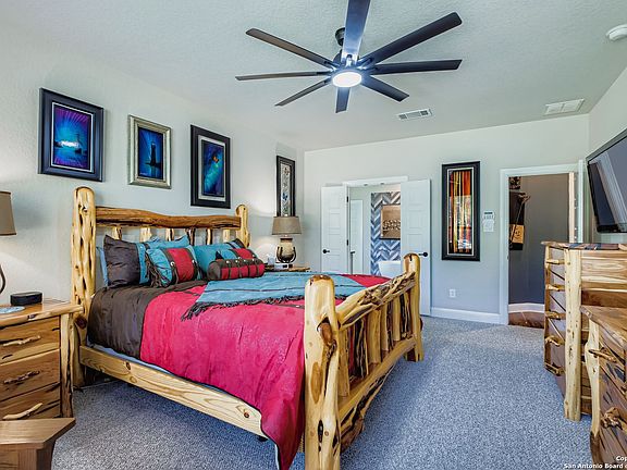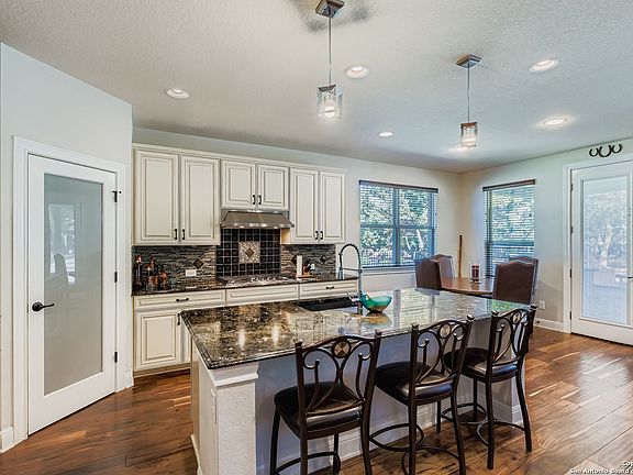 Exceptional one story living on over half an acre in a private, gated community with no city taxes! This thoughtfully designed 3bed, 2bath home features a dedicated study PLUS a media room, an ideal blend of functionality, comfort, and luxury. Situated on a quiet cul-de-sac lot on over 1/2 acre lot, backs up to a serene greenbelt with direct access to the natural space. Step inside to an open floor plan filled with natural light and accented by real wood window treatments adding timeless warmth and quality throughout. The gourmet kitchen with gas cook top, separate built in oven, custom cabinet organization overlooks the spacious living & outdoor oasis, making everyday living and entertaining effortless. Your backyard retreat includes a Zars sparkling pool complete with waterfall, outdoor kitchen, pergola, fire pit, and a covered patio with ceiling fan, all overlooking peaceful greenbelt views. It's the perfect setting for weekend gatherings, quiet mornings, and sunset dinners. A true standout, the three-car garage features epoxy flooring and connects directly to a well-appointed utility room outfitted with custom cabinetry, a sink, and a convenient drop zone ideal for keeping life organized. This rare combination of single-story luxury, oversized lot, premium outdoor amenities, and gated tranquility offers a lifestyle that's hard to find and impossible to forget. Schedule your tour today!