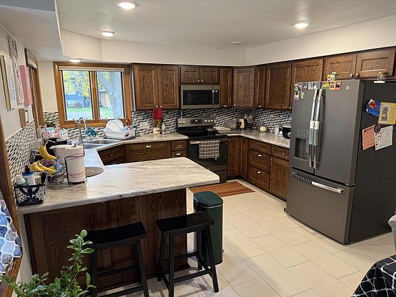 Fantastic, move in ready 3 bedroom home. Desirable south side location. Spacious bedrooms with plenty of closet space. Very well maintained. Sellers are selling due to unexpected job relocation. Main floor laundry located in large full bathroom. Kitchen is updated and has wonderful appliances. Lots of natural lighting. Enjoy real wood burning fireplaces as there is one on both levels. Large living room with nice view out the large picture window. Enjoy the finished basement complete with wet bar and 2 bar area refrigerators. Both a finished re. room and family room. Half bath room. Work from home in the office or 4th non-conforming bedroom. Backyard is fenced in and private with a covered porch. Spacious 2.5 car garage with carport cover. Room for all your toys.