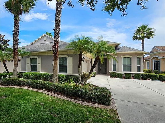 Welcome to this beautifully maintained 3-bedroom, 2-bathroom home located in the sought-after Devonwood Residential gated community in Land O’ Lakes. This elegant property offers the perfect blend of comfort, functionality, and luxury—all surrounded by lush landscaping and tranquil pond views. Step inside to find earth-toned ceramic tile flooring throughout, paired with architectural details like arched entryways and coffered ceilings that add a touch of sophistication. The spacious formal dining room and oversized living room create an ideal space for entertaining, with sliding glass doors that open to a covered and screened-in deck—your private retreat overlooking a serene pond and featuring an in-ground, Jacuzzi spa. The chef’s kitchen is a showstopper, featuring granite countertops, an island with seating, beautiful backsplash, ample cabinetry, a large pantry, and stainless steel appliances, including a gas cooktop—perfect for culinary enthusiasts. The primary suite is a true sanctuary with its own en suite bath, offering dual vanities, a walk-in shower, and two spacious walk-in closets. All bedrooms are generously sized, complete with large closets and ceiling fans. Additional features include: Generac generator, Surround sound system, Wired for home security, Water softener, Oversized two-car garage, and a laundry room with sink and extra cabinetry Enjoy all the perks of living in in this beautiful community , including bulk cable and internet, community-maintained grounds, lawn maintenance, roof repair and access to a resort-style pool and gazebo. Ideally located near major interstates, top-rated schools, airports, shopping, and dining—this home truly has it all. Don’t miss your chance to own a piece of paradise —schedule your private tour today!