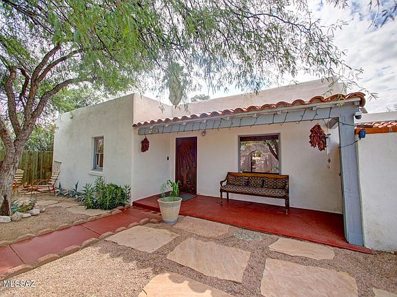 Enjoy the Timeless Charm of this Mid-Century Treasure In Historical Blenman-Elm neighborhood. Ideally located minutes from the U of A, Banner Hospital & Famous Arizona Inn. This 1938 vintage home has thick adobe inner walls. Cozy and authentic home has 1727 sq ft of open living space with fireplace framed with vintage tiles. New gorgeous Alderwood mesquite-stained kitchen cabinets, slab granite countertops, new Stainless steel appliances, High-end Waterfall Sink, 2 bedroom/2 baths and plus detached (288 sq ft casita.) Casita has murphy bed, separate bathroom with washer/dryer, saltillo tile floors, large Arizona room, timeless Dining room with original cupboard, antique ceiling lights, artistic custom security door, and so many more amenities that make this property so special! Follow the Flagstone walkway to the outdoor kitchen area with metal counters, private barbecue area with mosaic stone floor with hearts. One car garage with ample parking for several vehicles. Property fully enclosed with masonry walls and metal remote controlled metal gates. Truly a must see in the Heart of Tucson!!