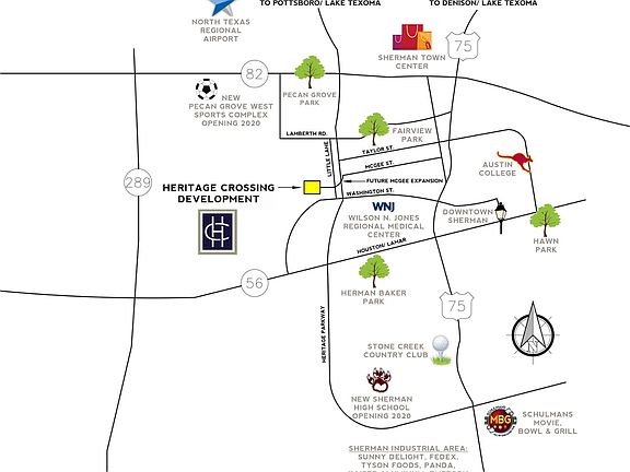 Rare opportunity to build your custom luxury estate in the highly desirable Heritage Crossing community in West Sherman. This premium lot is perfectly suited for a new home and offers the freedom to bring your own builder with no PID or MUD — keeping your investment focused on quality and design, not unnecessary fees. Heritage Crossing features oversized lots, mature trees, and elegant streetscapes, offering the privacy and space luxury buyers expect. Ideally located just minutes from US-75, you’re close to the expanding TI and GlobiTech campuses, upcoming retail and dining at Sherman Crossroads, and future development at Heritage Ranch. Zoned to sought-after S&S schools and within reach of the new Sherman High, this is the perfect setting for families looking to invest in both lifestyle and long-term value. All utilities are in place with completed infrastructure and final plat approved — ready for you to start building your dream home. With demand rising and limited premium lots available, don’t miss your chance to secure this exceptional homesite in one of Sherman’s fastest-growing and most prestigious neighborhoods.
