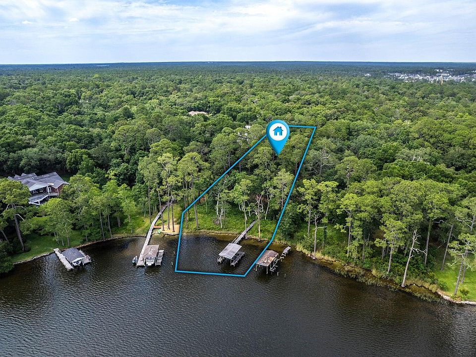 Prime Investment or Flip Opportunity on Rocky Bayou! This is your chance to transform a hidden gem into a stunning waterfront retreat! Situated on a spacious and wooded 1.41-acre lot with an impressive 155 feet of water frontage on beautiful Rocky Bayou, this property offers incredible potential for expansion and customization.The current structure has already been mostly gutted. The sellers are including architectural/structural plans and permits for the remodel, which includes adding 1,000 square feet to the front and rear of the home creating ample space for a luxury living experience, complete with room for a pool. Whether you're looking for your next flip project, custom waterfront home, or a long-term investment with high upside potential, this property checks all the boxes.