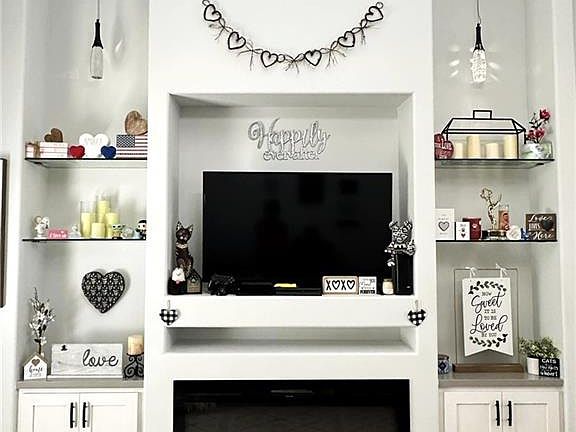 - Countertops (Quartz), Built-in Features, Ceiling Fan(s), High Ceilings, Fireplace, Split Bedrooms, Walk-In Closet(s)