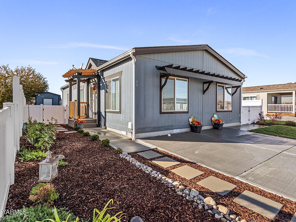 Welcome home to this beautifully maintained 3-bedroom, 2-bathroom manufactured home in the desirable Meadow Lands Park!From the moment you arrive, you'll notice the pride of ownership and meticulous attention to detail. The lush, landscaped yard is masterfully cared for, featuring a large concrete driveway, a welcoming front porch, and a charming pergola -- perfect for relaxing or entertaining outdoors.Step inside to an inviting open-concept living, dining, and kitchen area, where abundant natural light and stylish vinyl flooring create a warm, comfortable atmosphere. The kitchen offers plenty of cabinetry, modern finishes, and a layout ideal for both cooking and gathering.Down the hallway, you'll find a convenient laundry/mudroom with excellent storage and space for a full-sized washer and dryer. The two secondary bedrooms are generously sized -- perfect for children, guests, or a home office -- and are served by a bright, full hall bathroom.At the end of the hall awaits the spacious primary suite, featuring a well-appointed en suite bathroom for your comfort and privacy.Every detail of this 1,296 sq. ft. home reflects thoughtful maintenance and care. Whether you're starting out, downsizing, or looking for an affordable, turn-key home in a friendly community, this property is sure to impress.Schedule your private showing today and see why this home stands out in Meadow Lands Park!