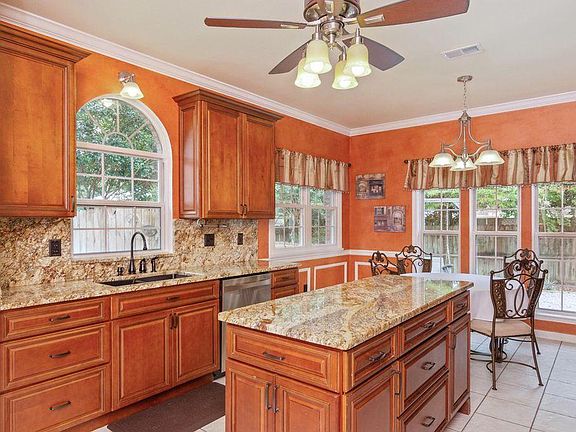 Spacious cul-de-sac home located in South Crestview! This 4 Bedroom, 2.5 bath, 2 story home features 2,359 square feet. Home is a convenient to all local Military Bases. Back yard features a large 10 x 20 storage shop that has French doors, is insulated, drywalled, wired for electrical, crown molding, ceiling fans, window AC unit and water hook up. On the interior of the home you will find a custom kitchen with stainless steel appliances, granite countertops and backsplash, custom cabinets and crown molding and abundant cabinet space. Down stairs you will find a spacious master bedroom, large walk-in closet and the master bathroom has a jacuzzi tub, separate shower and granite countertops. An additional bedroom off the living room with walk-in closet with custom closet storage is also downstairs. Upstairs are two spacious bedrooms, full bath and a bonus room with skylight.