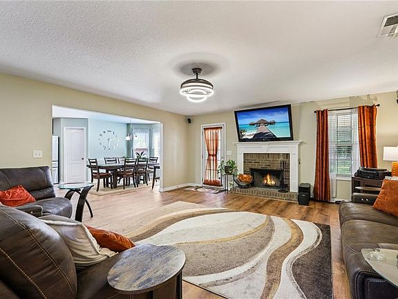 Beautifully updated 5BR/4.5BA home in Ellenwood! Fresh LVP flooring and paint throughout, newer roof and water heater. Main level features a large dining room, flex/office space, fireside living room, and kitchen with stained cabinets, island, walk-in pantry & new appliances. Full bedroom and bathroom suite on main. Upstairs find a spacious primary suite with sitting room and an ensuite bathroom with double vanity, soaking tub & separate shower, plus 3 secondary bedrooms (one with ensuite bath). Enjoy the flat backyard with covered patio—perfect for entertaining!