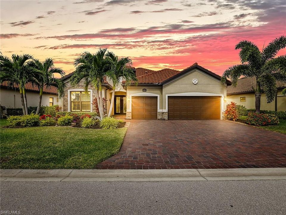 Exquisite Summerville Lake View Home in Bonita National Golf & Country Club! This beautifully upgraded 3-bedroom plus den, 3-bath, 3-car garage home offers resort-style living at its finest. Outside, enjoy a heated saltwater pool and spa, summer kitchen with stonework, wood ceiling lanai with lighting, sealed driveway and lanai, and lush custom landscaping with added drainage and gutters. Inside, this fully integrated Google Smart Home features plank tile flooring, fresh interior paint, plantation shutters, custom drapery, designer lighting, and custom closets throughout. The kitchen impresses with upgraded cabinetry, stainless range hood, under-counter wine cooler, custom backsplash, and wainscoting in the formal dining area. The living room showcases a shiplap ceiling, custom entertainment wall with fireplace. The primary suite is a true retreat with a custom ceiling, electronic shade, dual closets, and an elegant bath featuring his and her vanities, a soaking tub, a separate glass shower, and framed mirrors. Guest suites feature crown moulding, custom lighting, and tile to ceiling. The home is equipped with a Kinetico whole-house water filtration system, plus reverse osmosis at the kitchen sink for ultra-clean drinking water. The garage offers epoxy floors, insulated doors, custom cabinetry, attic storage, and an HVAC air scrubber. Enjoy the amenities of Bonita National, including an 18-hole championship golf course, resort-style pool with waterfall and cabanas, full-service spa, fitness center, tennis courts, fine and casual dining, and a lively social calendar. This home is one of the most extensively upgraded Summerville models in Bonita National—move-in ready and truly exceptional.