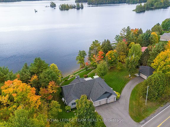 Experience the pinnacle of year-round waterfront living in this meticulously crafted, custom-designed luxury estate property. Set on a private 1-acre lot with over 200 ft of pristine frontage on Black Donald/Centennial Lake, this residence offers unparalleled elegance, comfort, and tranquility. From the moment you arrive, you'll be captivated by the seamless blend of sophisticated design and functional living spaces. The grand entrance opens to an expansive interior adorned with high-end finishes, custom millwork, and floor-to-ceiling windows that frame stunning water vistas at every turn. Every detail has been thoughtfully curated to provide a warm & inviting atmosphere. The chefs kitchen is a culinary masterpiece, featuring premium appliances, custom cabinetry, a breakfast station, and a large island - perfect for preparing gourmet meals. A thoughtfully designed butlers pantry provides additional storage for dry goods and fine wines, as well as space ideal for prepping evening canapés and dessert courses. The primary suite serves as a private sanctuary, boasting a spa-inspired en-suite with custom walk-in closets, jack and Jill vanities, and a private soaker tub with unparalleled views of the manicured grounds. 3 additional lower level bedrooms are generously sized and elegantly appointed. Included in the guest wing are 2 additional living spaces and a separate kitchenette. Outside, the property boasts extensive professional landscaping complemented by an advanced irrigation system, ensuring lush, vibrant grounds. The expansive outdoor living spaces include a deck with an outdoor kitchen, patios, waterfront gazebo and beautifully manicured lawns. A detached garage offers a window nook for potting, ample storage for tools, and a large space for storing all of your toys. Black Donald and Centennial Lake are interconnected by the Madawaska River, providing 43 km of continuous waterways. This lake is also accessible to float planes, and there is an aerodrome.