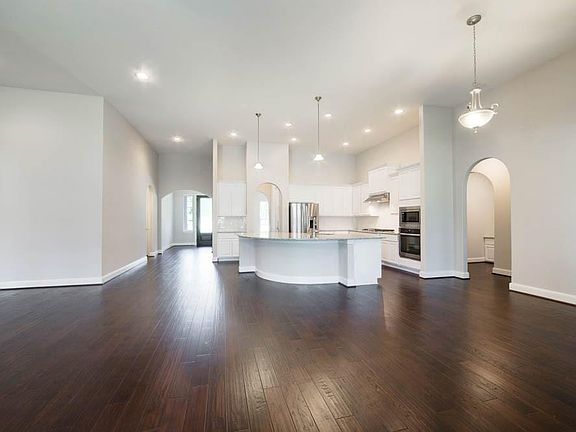 Through the foyer of the Kingston, you'll find the soaring ceilings of the family room, a stately fireplace and direct access to the kitchen. Stainless appliances, a vast island and a breakfast nook are all highlighted within this dream kitchen. The master retreat offers a bath with a soaker tub, dual-sink vanities, a walk-in shower and a walk-in closet. Additionally, the Kingston includes three spare bedrooms, a dining room, a media room, an outdoor kitchen and an attached three-car garage.