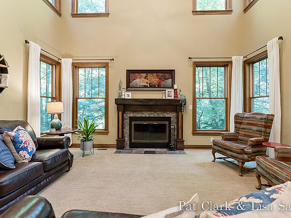 Amazing 5 bedroom, 5 bath one owner home with a 3 stall HEATED garage on 1.5 acres in Spring Lake Schools! This custom built walkout includes 2 kitchens, 2 laundry rooms, home office, heated flooring, beautiful primary suite all on a private wooded lot with two streams. The great room with fireplace is open to the upper level and is ideal to decorate for the holidays.