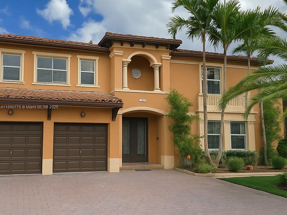 This beautiful lakefront pool home features 5 bedrooms, 5 bathrooms, and a 2-car garage in the gated community of Palermo at Venetian Isles. Upon entry, you are welcomed by marble floors, soaring ceilings, and a spacious kitchen with wood cabinetry and granite countertops. The first floor offers one bedroom and a renovated bathroom, while the second floor boasts a ceramic-floored loft and four additional bedrooms with wood floors, each with its own bathroom. The primary suite includes a large custom closet with an island, a seating area, and a private balcony overlooking the lake and pool. The home is also equipped with wood-style shutter blinds and built-in closets. Ideal for large families in a tranquil neighborhood. Come and see it for yourself. No HOA approval required.