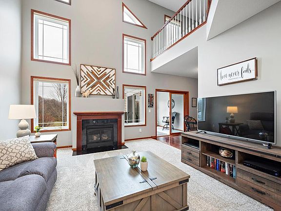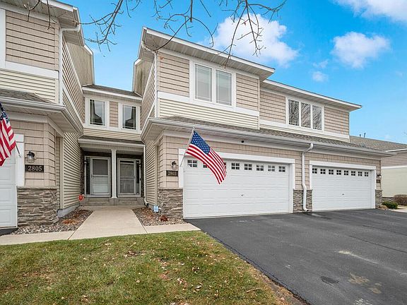 Price Improvement. Don’t miss this beautiful townhome in the highly sought after Chaska Town Course neighborhood! The home’s new (in 2022) Trex deck overlooks the 15th fairway, offering dramatic views all year round. Relax in the cozy sunroom that opens up to the deck and beautiful backyard. Immaculate 3 bedroom, 4 bathroom home shows pride of ownership throughout, including new carpet and fresh paint. The main level kitchen and great room with gas fire place is perfect for families or entertaining. The upper level boasts 2 bedrooms and a loft overlooking the vaulted main level. The spacious owners suite includes W/I closet, private full bath and vaulted ceilings. The lower level adds 3rd bedroom, bathroom and family room for even more space to stretch out. The townhome community includes a pool and walking paths, and is close to parks, schools and shopping. This home has everything you want!