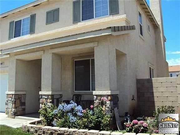 This lovely and spacious 5 bedroom home is located in one of the best areas of West Palmdale. There is a formal living room, separate family room with fireplace, dining area, and kitchen with center island and lots of cabinets. Also downstairs is a bedroom, full bath, laundry room with wash sink, and 3-car garage. Upstairs is a loft area, three bedrooms, full bath, and master bedroom retreat with balcony and master bath with dual sink vanity, jacuzzi tub, separate shower, and walk-in closet. The landscaped backyard features a covered patio and storage building. A short walking distance to Cottonwood Elementary School, Highland High School and Marie Kerr Park.