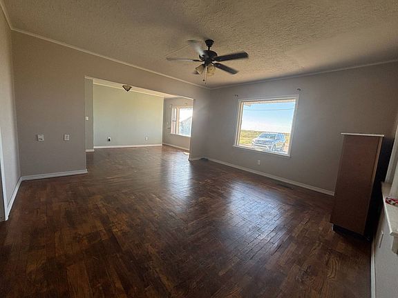 Discover wide open spaces with this charming farmhouse situated on 155 acres. The home offers 3 bedrooms and 1 bath on the main floor, along with a full-size unfinished basement that holds potential for 3 additional bedrooms. Original hardwood floors add warmth and character, while a durable metal roof ensures peace of mind. Outside, you'll find a detached 2-car garage and a spacious barn, partially concreted on the north side, perfect for livestock or equipment storage. Whether you're looking to expand your farming operation or simply enjoy the beauty of country living, this property offers endless possibilities.