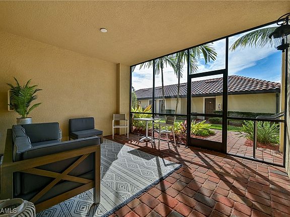This Coastal Contemporary style 2 bed + den / 2 bath in Bonita National Golf & Country Club is a first floor unit with a screened in front and back lanai perfect for viewing both sunrise and sunset! The back lanai overlooks the golf course designed by Gordon Lewis and offers privacy with a wooded backdrop. The front lanai is steps away from the stainless-steel equipped kitchen, allowing you easy access to your beverage needs! Check-in is a breeze with our convenient keyless entry, which allows direct access to the home upon arrival! All home info is sent to you before your vacation begins to ensure you have important info at the ready. The common areas are tiled and there is carpet in the bedrooms. A short drive to the Gulf of Mexico sandy beaches and central to Naples and Fort Myers, this vacation home is well equipped & great for entertaining. *Season 2026; available per January 9, 2026, so first rental needs to start on or before mid-January 2025